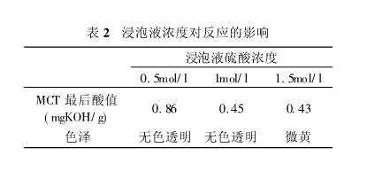 不同浸泡液硫酸浓度对反应的影响