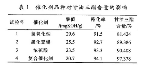 1、不同催化体系对甘油三酯含量的影响
